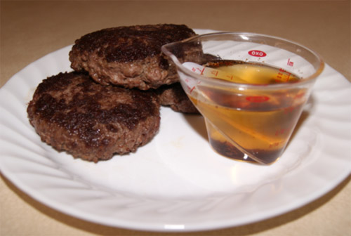 grease off by tipping the pan. Some cooks even resort to rinsing the grease